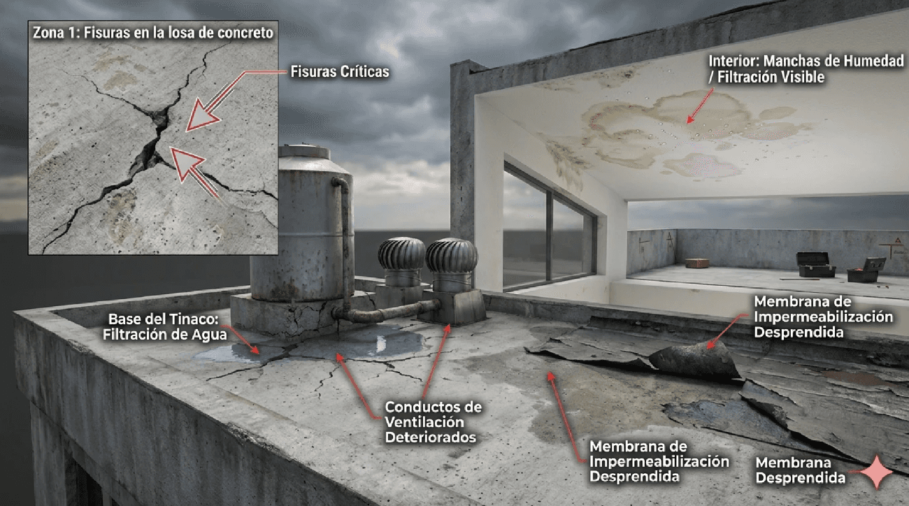 En temporada de lluvias esto es muy común: se repara durante una pausa de lluvia, pero la losa sigue húmeda internamente.