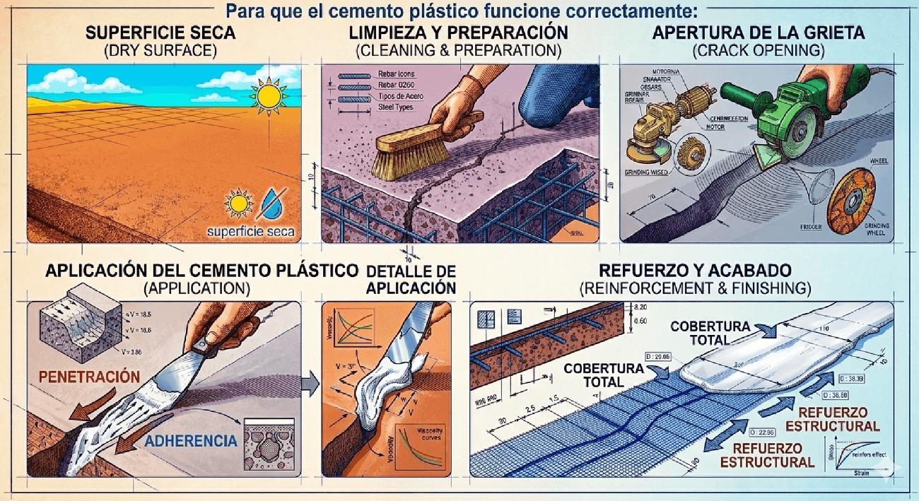 El cemento plástico es una solución puntual, práctica y eficaz cuando se aplica correctamente.