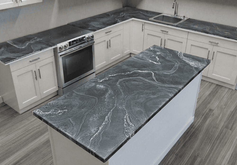 Las cubiertas y encimeras son superficies que están en uso constante, por lo que necesitan materiales que combinen durabilidad, resistencia y buena apariencia. Con resina epóxica es posible crear acabados decorativos tipo piedra o mármol que además forman una superficie continua, brillante y fácil de limpiar.